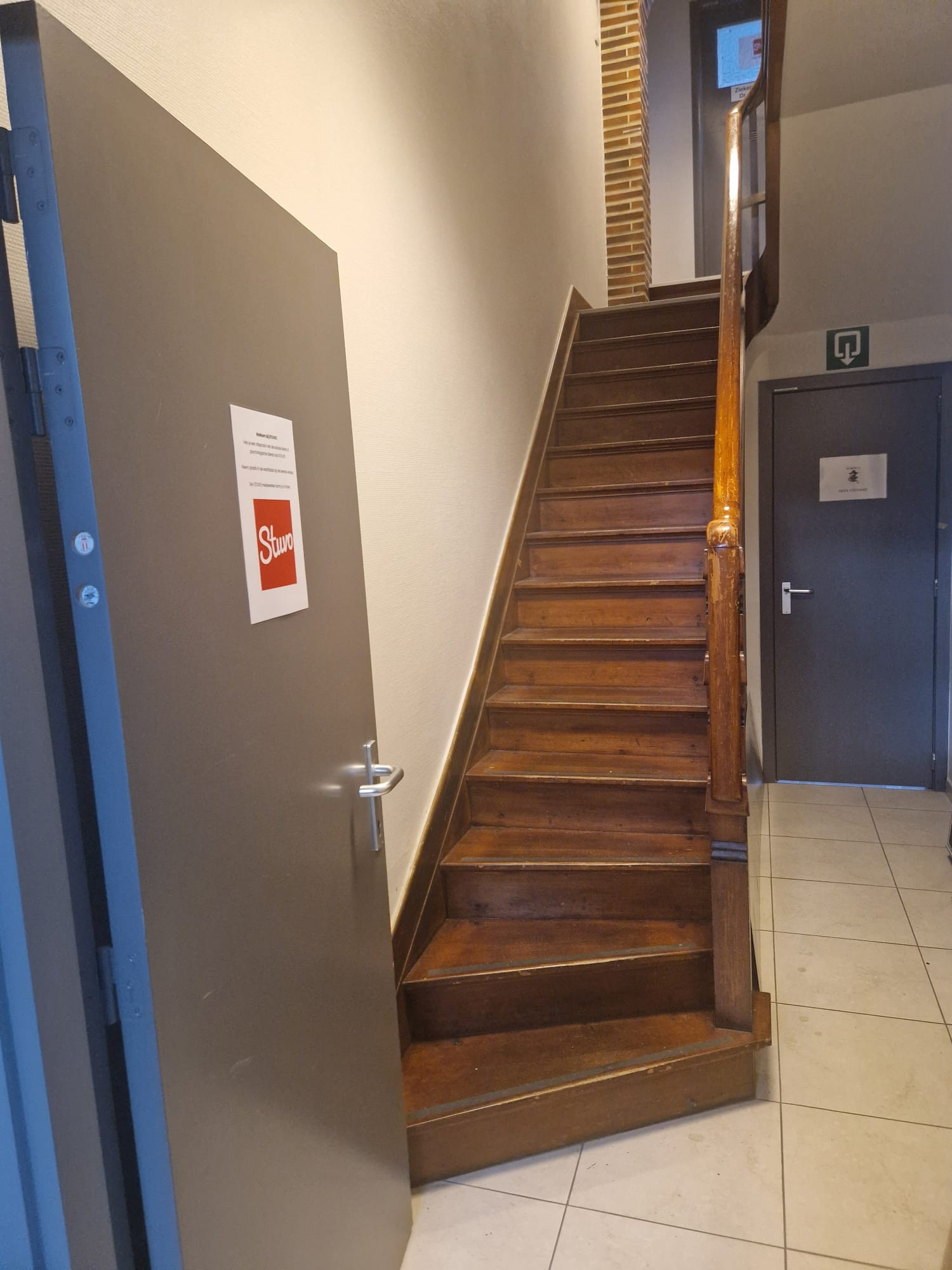 2/ Bel aan. Een medewerker laat je binnen. Neem plaats in de wachtzaal op het eerste verdiep. De STUVO medewerker komt je zo halen;